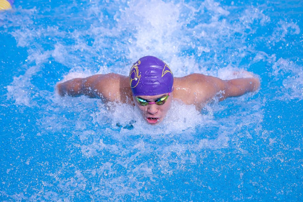 I went into the swim meet knowing I wanted to capture a shot like this where the swimmer was centered and the individual water droplets were captured. The lighting outside was fairly bright, so I was able to turn the ISO down by a lot compared to indoor sports, and because the water droplets moved slower than I expected, I could also turn the shutter speed down.